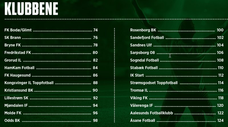 Hver klubb omtales på 2 sider og måles på alle kriteriene i modellen.