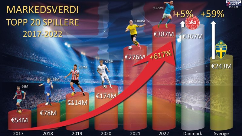 Klubbene våre spiser innpå forspranget kontinentet har tilrevet seg. Våre yngre landslag presterer godt mot de beste og vi har et utrolig spennende U21-Europamesterskap å se frem imot neste sommer, våre spillere gjør seg mer og mer attraktive for klubber vi hadde plakater av på veggen hjemme på barnerommet, og i tillegg eksporteres det spillere ut av landet for stadig høyere verdi. Siden 2014 har vi solgt spillere ut for ca. 2 milliarder. I 2022, vårt hittil beste eksportår ca. 355 millioner.