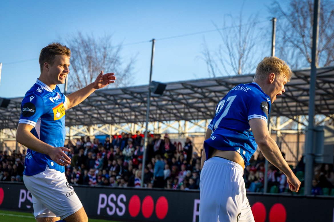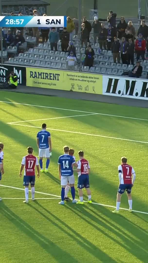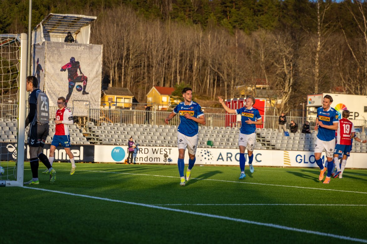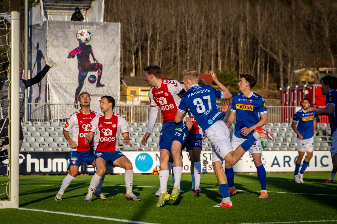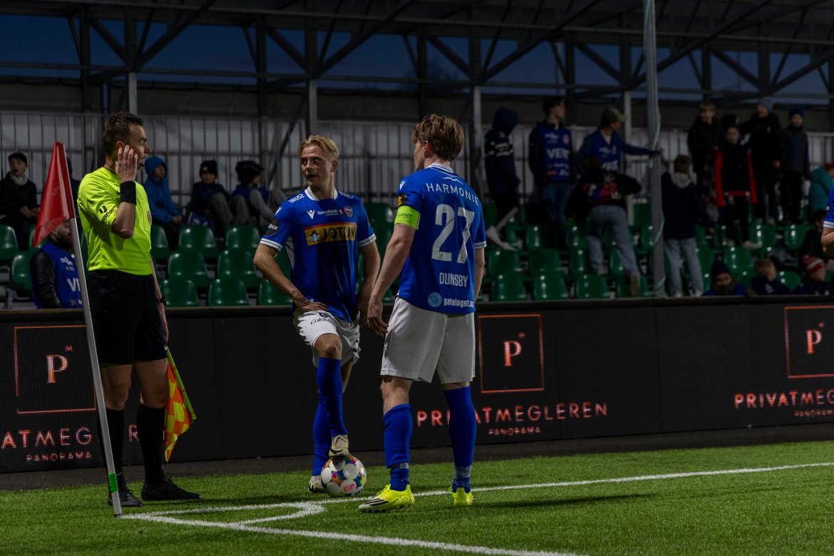 Det hele startet veldig godt, og allerede etter fire minutter utnyttet vi et hjørnespark til det fulle. Jakob Vester steg til værs og headet sikkert inn årets første mål!