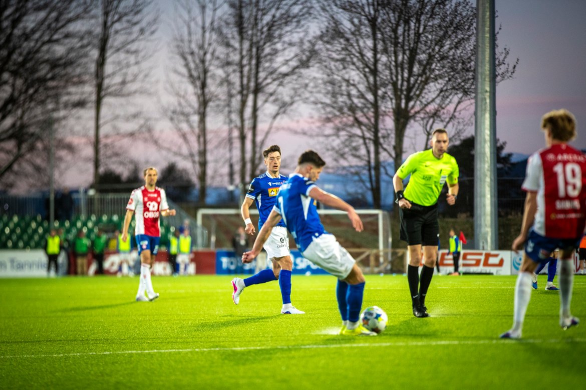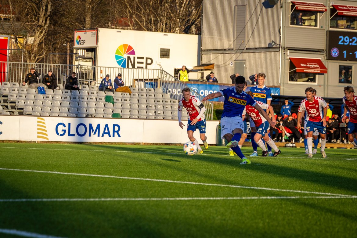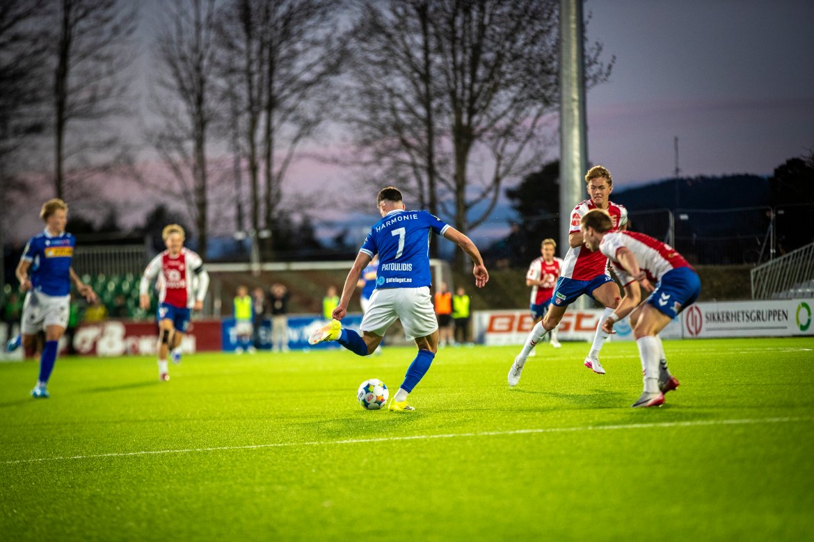 Etter halvtimen så fikk vi straffespark etter en hands i feltet. Evan Patoulidis steg selvsikkert frem til straffemerket og satte ballen sikkert i nettet. 2-1 til oss, som holdt seg til pause.