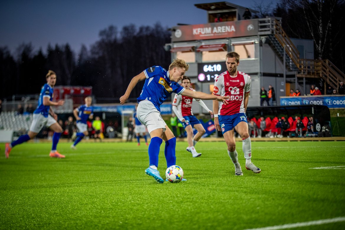 I andre omgang startet det på verst tenkelig vis da KFUMs Kristensen satte ballen i mål. Men VAR kom inn og stadfestet at KFUM hadde en offsideplassert spiller i oppbygningen.