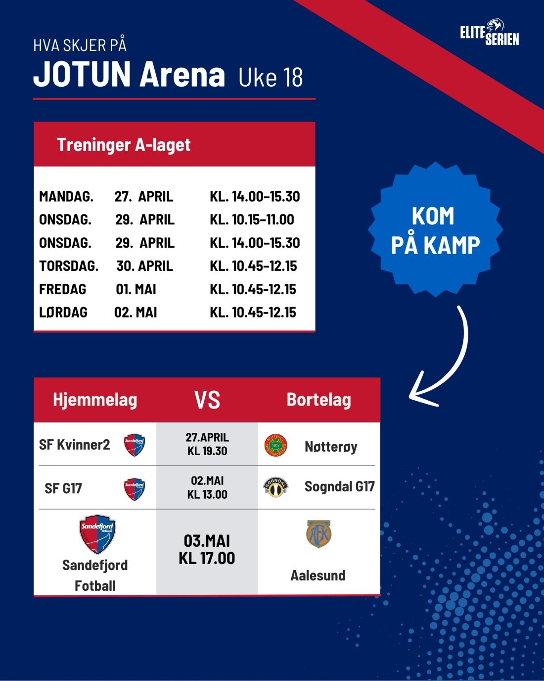 Dette skjer på Jotun Arena i uke 18