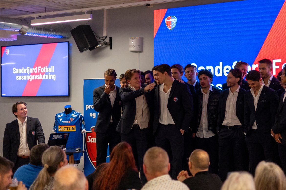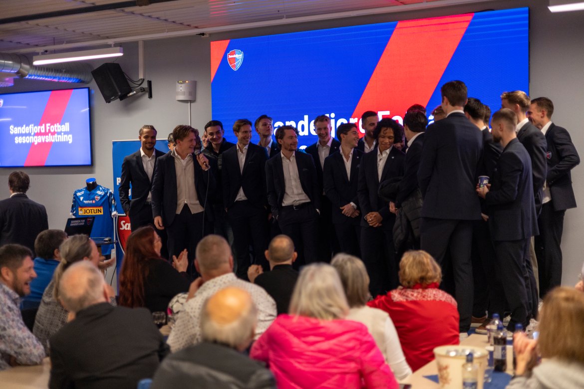 Etter siste seriekamp mot Fredrikstad samlet vi supportere, sponsorer, spillere og støtteapparat til sesongavslutningsfest i tredje etasje på Jotun Arena.