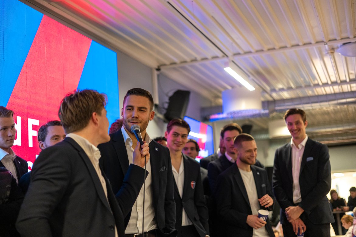 Vi vil gjerne rette en stor takk til alle som dukket opp og gjorde den siste kvelden i årets Eliteserie minnerik og minneverdig. Resultatet ble ikke helt som vi håpet på, men det var fantastisk å se så mange flotte mennesker samlet for å vise sin støtte og takknemlighet til spillere, trenere og støtteapparat. Simen Hem ledet oss trygt igjennom kvelden og fikk god drahjelp av en av våre ypperste menn, Jakob Maslø Dunsby. Sistnevnte tok seg av spillerintervjuer i starten og fikk varmet opp troppen slik at unge herr Hem fikk en litt lettere jobb senere.