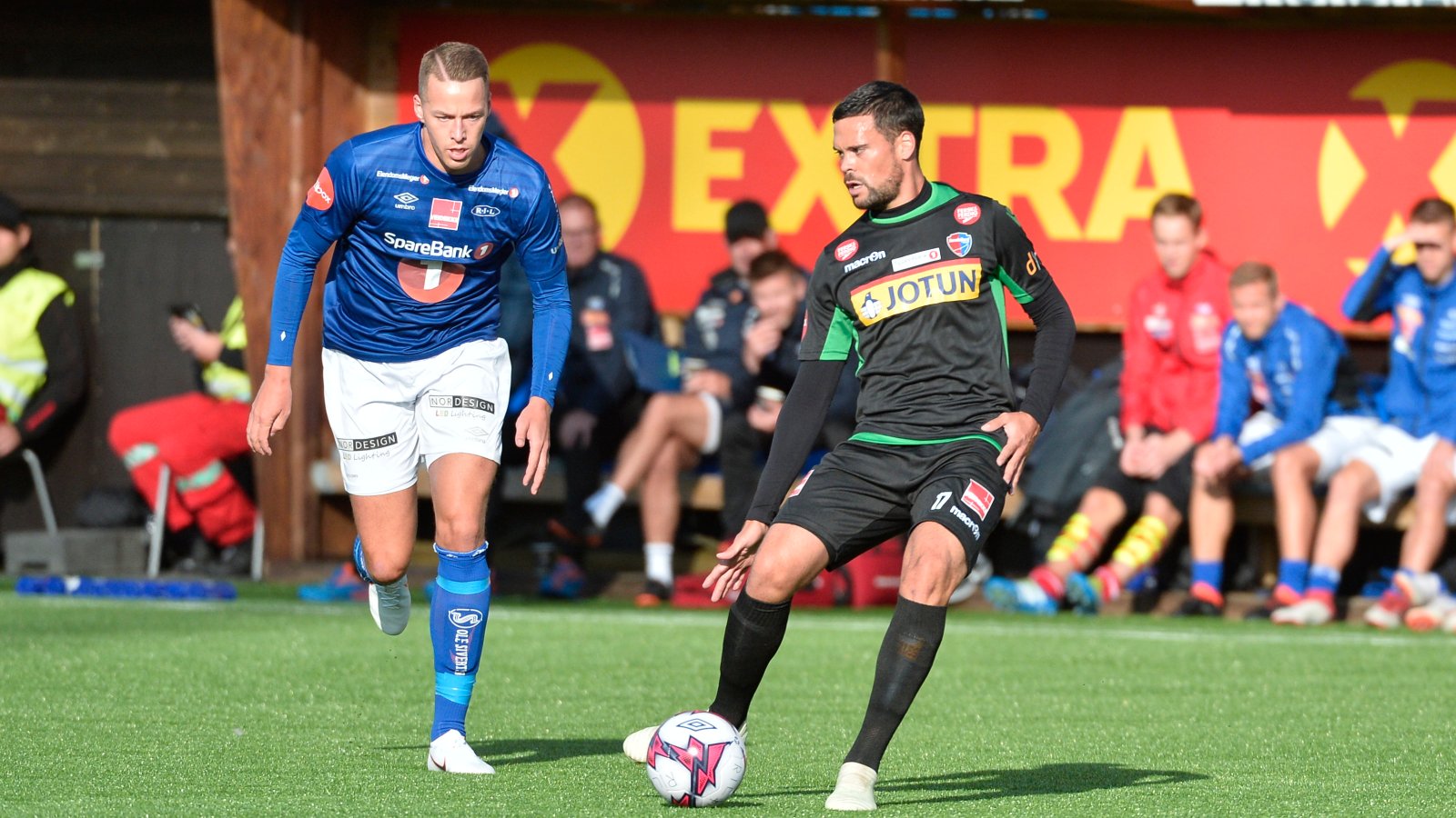 Sandefjord Fotball (4-2-3-1): Eirik Holmen Johansen - Christer Reppesgård, Marc Vales, Marius Høibråten, Stian Ringstad (Grorud, 72') - Enric Vallès, Emil Pálsson - Mohamed Ofkir (Azemi, 80'), Håvard Storbæk, Pau Morer - Pontus Engblom (Rufo, 85')