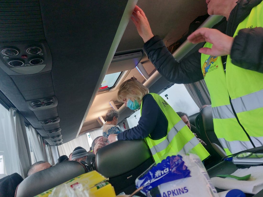 «Buss-Tom» eller Tom Olsen som han egentlig heter – har vært nede med buss og hentet flyktninger fra det krigsherjede landet – og hjem hit til Norge åtte ganger før denne spesielle turen. (På bildet over fra venstre: Bjørn Sturød, Ann Brit Skåland Eriksen, Odd Gunnar Sanden, Olena Karlova,Yuliia Shtrielle, Paul Erik Gaalaas Hansen, Nataliya Chernichenko, Mari Halvorsen og Tom Olsen). – Den niende reisen var nemlig helt spesiell. Det var en ren syketransport. Hvis vi ikke hadde hentet hjem 31 passasjerer – så hadde de ikke overlevd. Dette var forskjellen på liv eller død. Det var en rutinert gjeng som dro ned denne gangen, men samtlige var enige om at denne turen var den siste. Inntrykkene, lidelsene til de vi hentet og bildene vi for alltid vil ha på netthinnen – det ble etter hvert svært krevende. Vi har vært på såkalt debriefing i etterkant. Likevel er vi overbevist om at vi ikke skal nedover igjen, Ingen av oss. Dette ble for sterk kost. Tom Olsen forteller følelsesladet om at samtlige av de skadede fikk livet i gave.