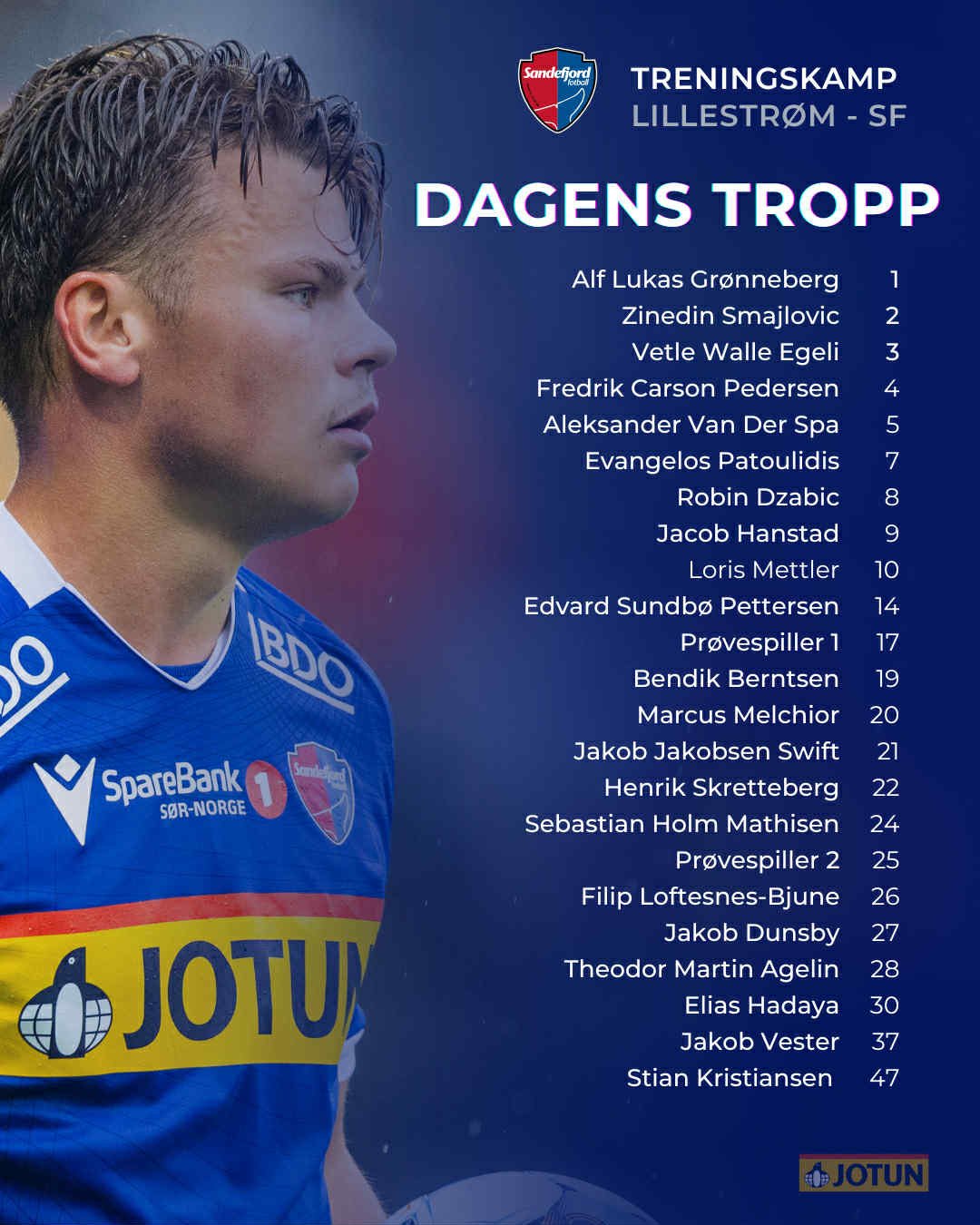 Etter 65 min byttet vi ut Walle Egeli, Smajlovic, Carson, Vester, Sundbø Pettersen, Melchior og Holm Mathisen. Inn som erstattere kom Issah (prøvespiller), Skretteberg, Agelin, Mettler, Swift, Dzabic og Hanstad.